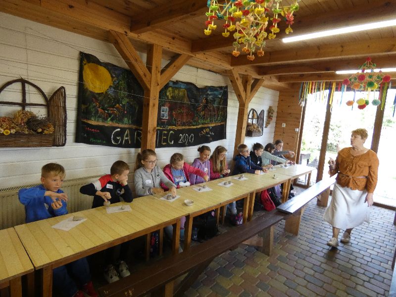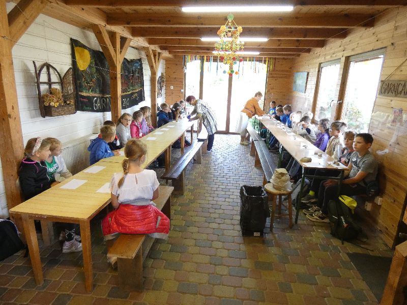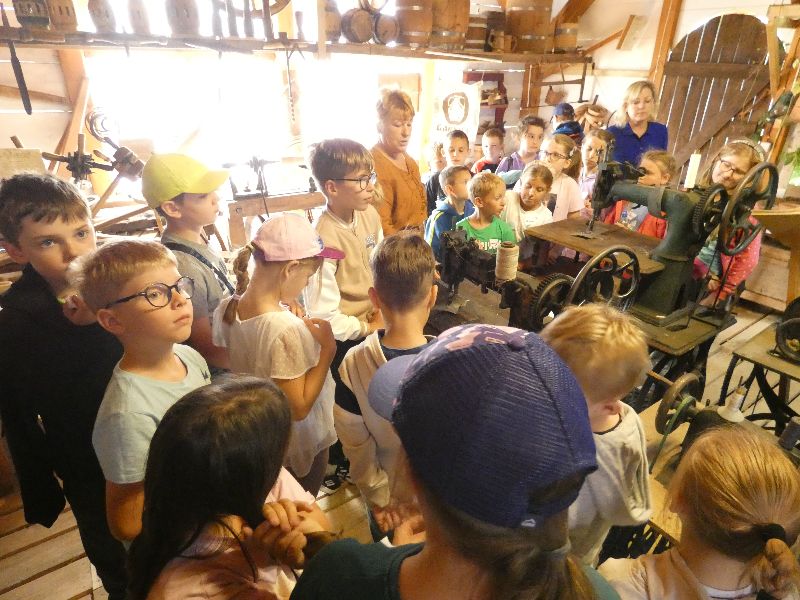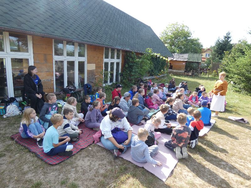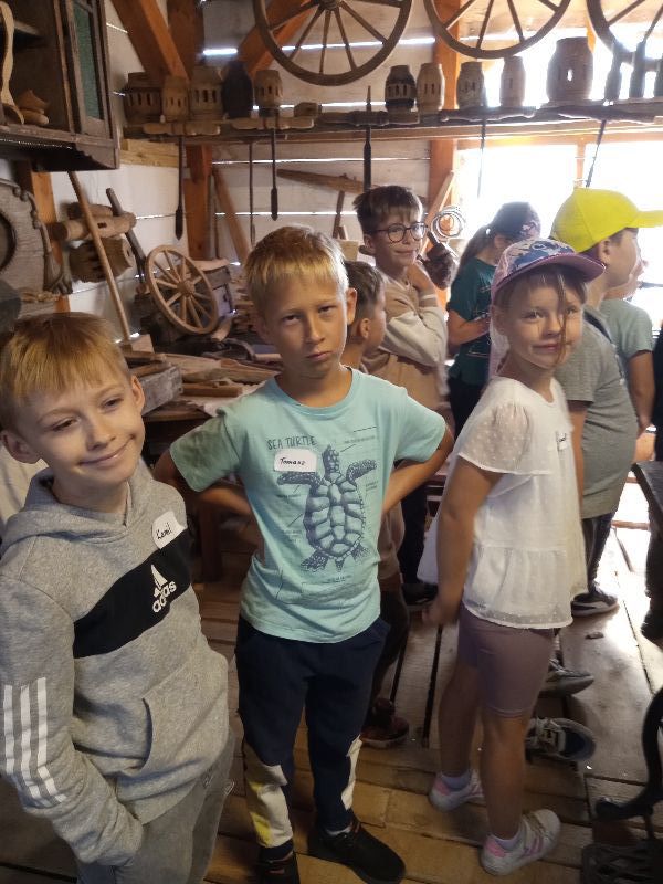 W ramach projektu "Kiedyś i dziś – tradycja żywa" uczestnicy zwiedzili skansen, w którym znalazły się przedmioty i narzędzia związane z rolnictwem, tkactwem, koszykarstwem, kaletnictwem i garncarstwem.